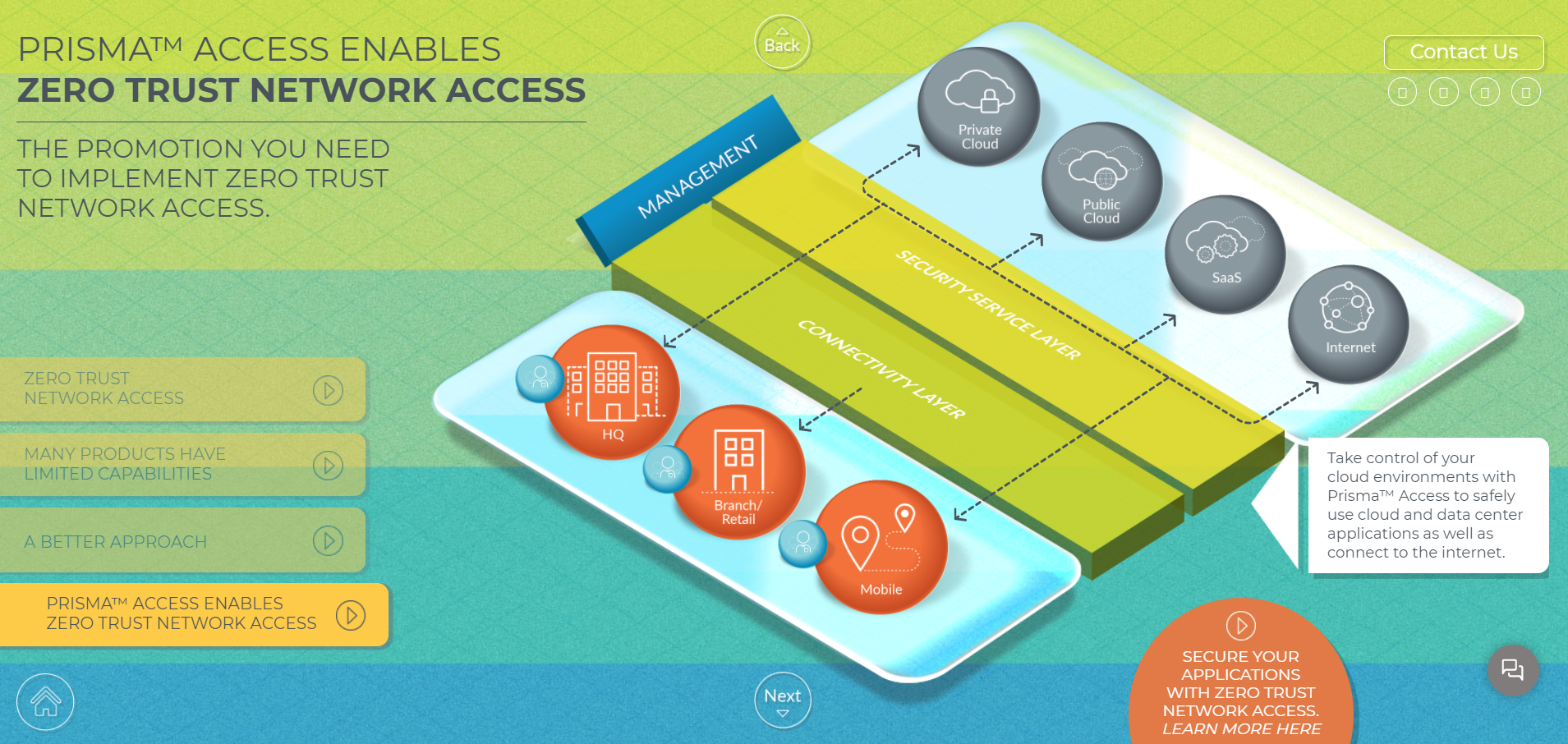 The SASE model for secure remote access migrates enterprises away from a perimeter- and hardware-based network security approach to one that provides secure remote access to corporate applications, data, and tools for a dispersed workforce that works from anywhere—their homes, branch offices, or corporate headquarters.
