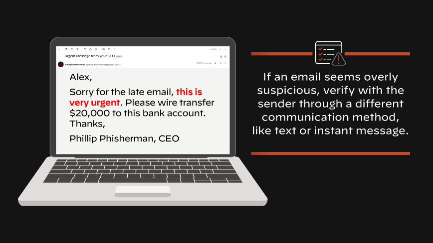 The email is designed to look as authentic as possible, often replicating the style, tone, and signature of the impersonated individual or organization. The email will typically include a request or some urgency for encouraging the target to act quickly, which might involve clicking a link, downloading an attachment or providing sensitive information.